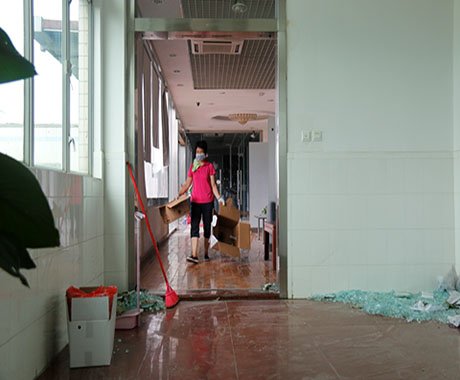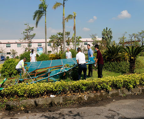 24日一早,劉錦鐘董事長、張海濱總經(jīng)理現(xiàn)場進行全方位巡查,根據(jù)公司受災情況,提出調(diào)動資源優(yōu)先修復辦公區(qū)域在臺風中破損的門窗、天花,以便第一時間恢復公司正常辦公生產(chǎn)環(huán)境。另一方面,配合保險公司人員清點公司受損資產(chǎn)以做好索賠工作。在公司領導的指導下,總經(jīng)辦及后勤工作人員從24日開始,緊張、高效而有序的開展各項災后修復,及應對27日“帕卡”臺風的準備工作。